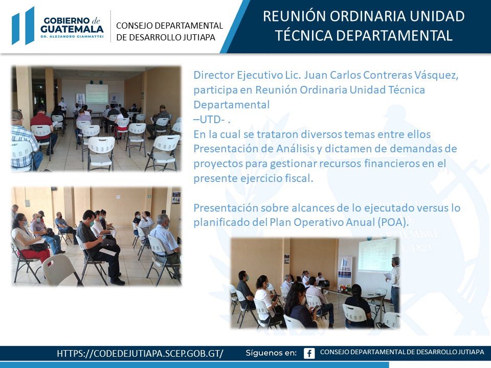 Director Ejecutivo Lic. Juan Carlos Contreras Vásquez, participa en Reunión Ordinaria Unidad Técnica Departamental.