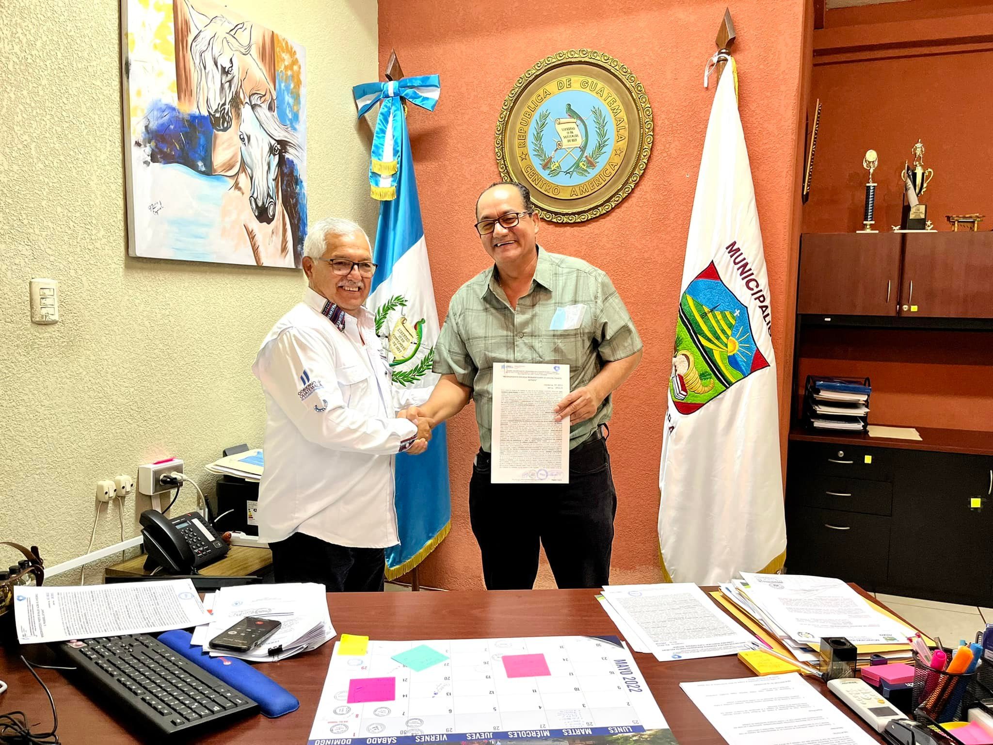 El Presidente del Consejo Departamental de Desarrollo (CODEDE), El Gobernador Departamental Edvin Humberto Lemus Morales, recibió en su despacho al Alcalde de Pasaco Ottoniel Pineda.