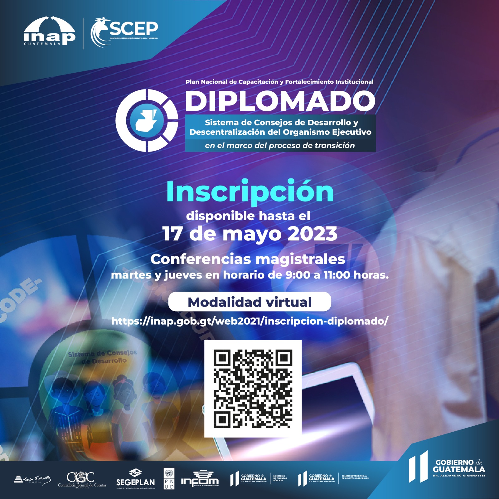 La inscripción para el Diplomado en Sistema de Consejos de Desarrollo y Descentralización del Organismo Ejecutivo, en el marco del proceso de transición, estará disponible hasta el 17 de mayo de 2023.