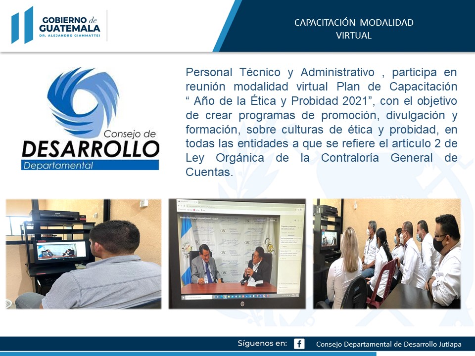 Consejo Departamental de Desarrollo Jutiapa participó en reunión Modalidad Virtual Plan Capacitación
